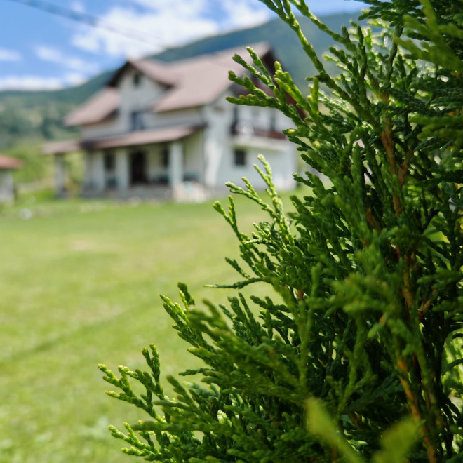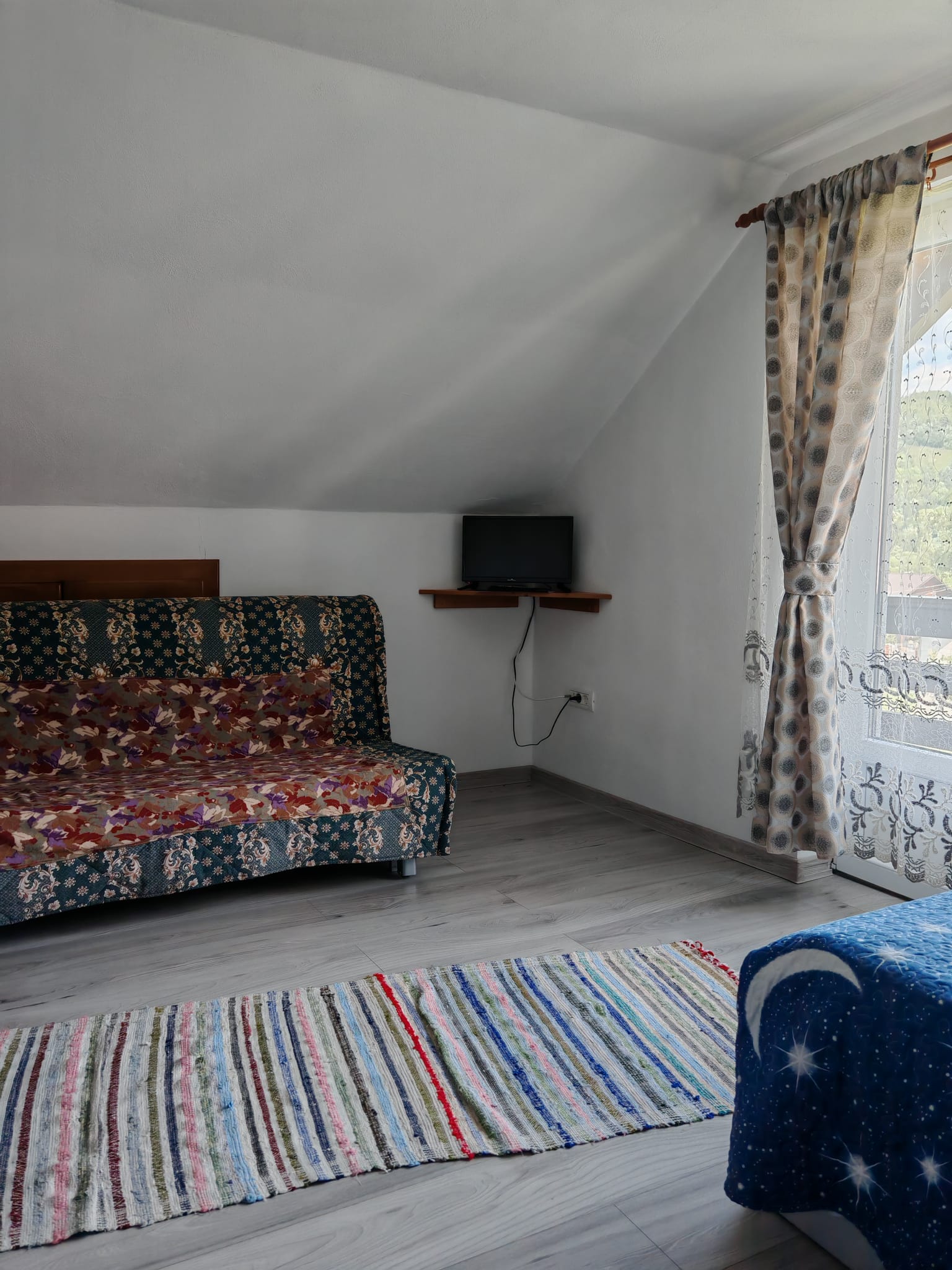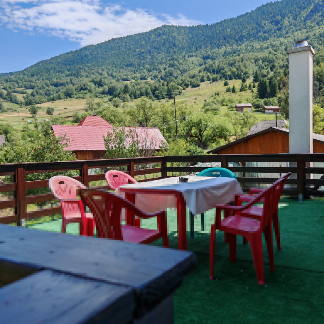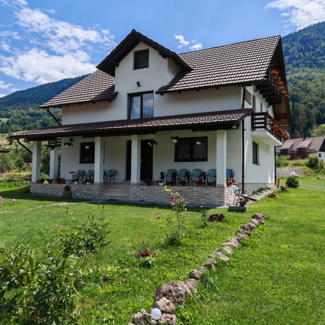 Pensiunea dispune de camere spațioase, decorate în stil tradițional cu influențe rustice, dar echipate cu toate dotările moderne: baie proprie, Wi-Fi gratuit, încălzire centrală și vedere spectaculoasă către munți. Bucătăria complet utilată și spațiul de relaxare din curtea pensiunii îți oferă libertatea de a te simți exact ca acasă.