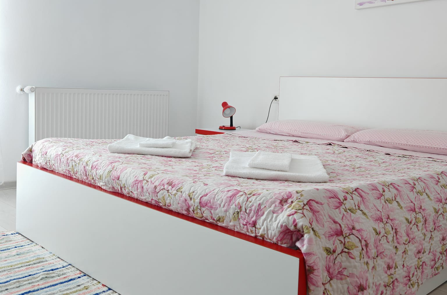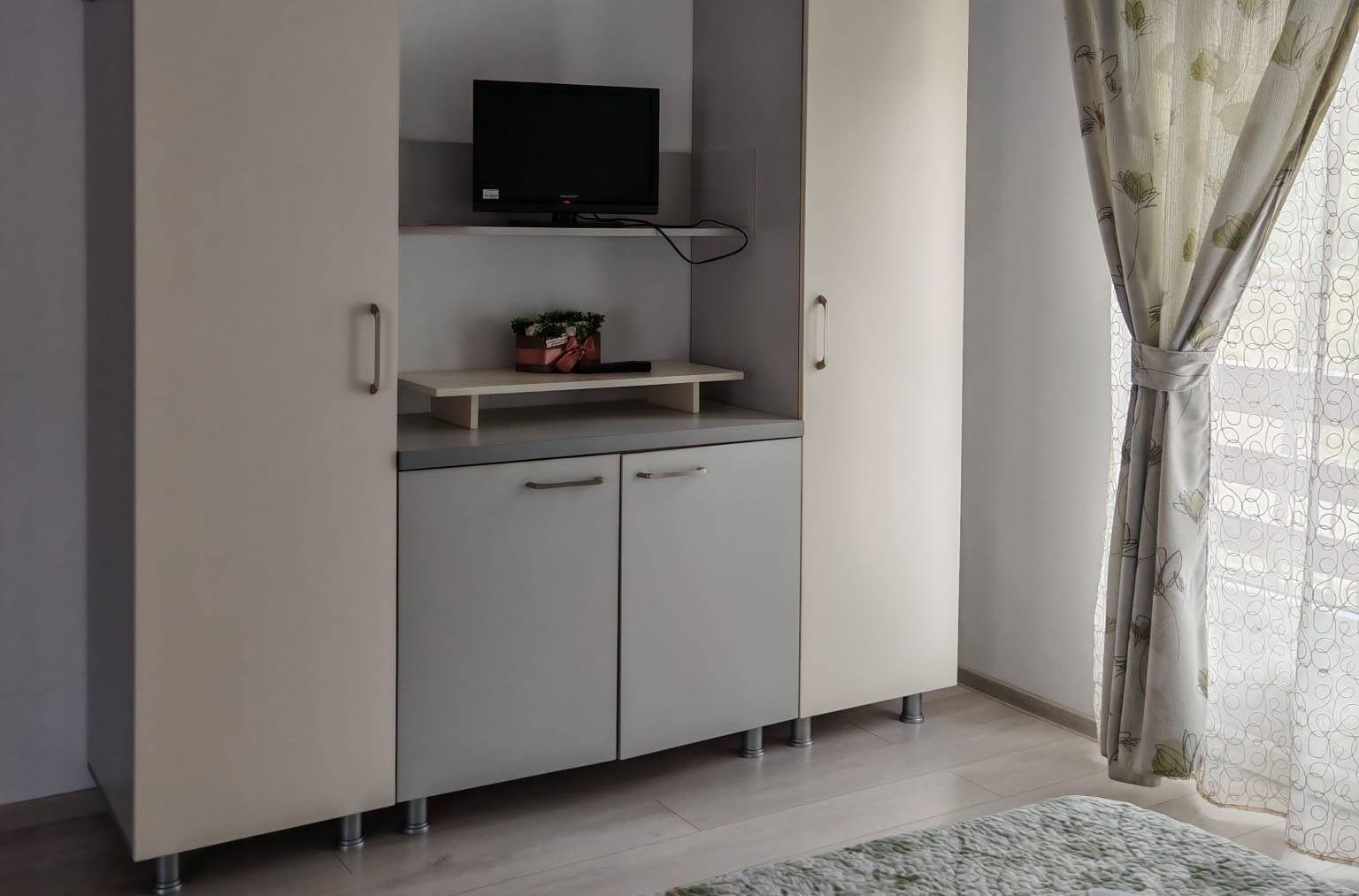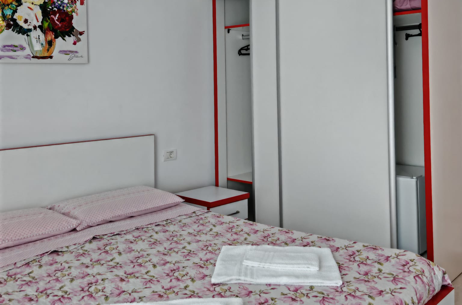 Această cameră spațioasă și luminoasă este ideală pentru cupluri sau turiști în căutarea confortului. Dispune de un pat matrimonial generos, baie proprie cu duș, frigider în cameră pentru păstrarea băuturilor sau gustărilor și acces la o terasă privată unde te poți relaxa în aer liber. Designul este simplu și plăcut, cu tot ce ai nevoie pentru un sejur liniștit.