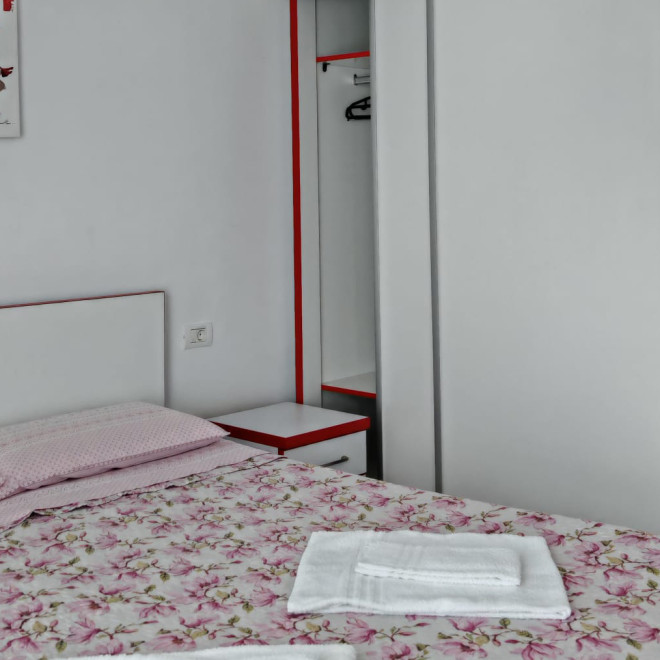 Această cameră oferă două paturi de o persoană, fiind ideală pentru prieteni, colegi de drum sau turiști în căutarea unei opțiuni de cazare accesibile. Baia este comună și se află pe hol, fiind întreținută regulat pentru confortul oaspeților. Camera nu dispune de terasă, dar beneficiază de lumină naturală și mobilier esențial pentru un sejur plăcut: noptiere, dulap și acces gratuit la internet Wi-Fi.