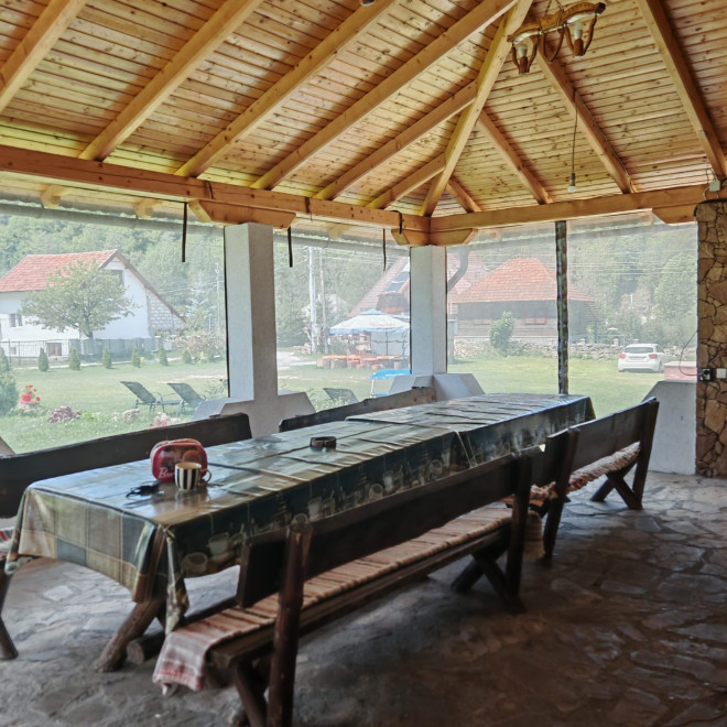 Foișor primitor cu loc pentru grătar, ideal pentru mese în aer liber și momente de relaxare în natură.